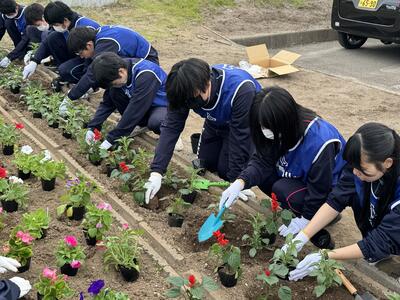 令和6年6月6日(木)の放課後に、生徒会の皆さん13名が学校近くの山形道宮城川崎インター料金所脇の花壇の植栽に行ってきました。この植栽はNEXCOの職員の皆さんと共同で年2回行っています。第1回の実施は、コロナウイルス蔓延防止対策の期間や雨などで中止が続き、久しぶりの活動となりました。苗は柴田農林高校の本校から仕入れています。