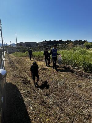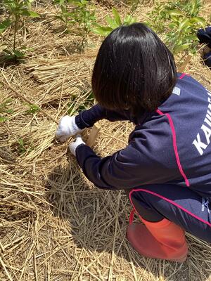令和6年6月6日(木)に川崎校の1年生と川崎第二小学校の3・4年生との交流事業として、岩沼にある千年希望の丘で植樹活動を行ってきました。今年はバス一台に、高校生と小学生が乗り合わせ、出発からの交流となりました。講師には、公益財団法人鎮守の森のプロジェクトの皆さんが協力してくれました。この植樹活動は東日本大震災での津波被害を教訓として、木を植えて森を作り、防潮堤とするための取組で毎年行っています。植樹前には、防災用の丘に登り周囲を見渡しました。その後、高校生と小学生とで木を植えました。コナラなど様々な木の種類を植えましたが、中心となる木は潮風に強いタブの木になるそうです。
