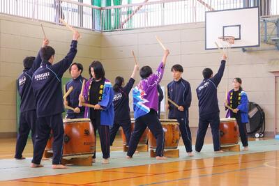 令和6年11月7日(木)に川高祭(文化祭)で披露した和太鼓演奏とよさこい演舞を、学校裏のディサービスから、おじいちゃん、おばあちゃん達を招待し、学校の体育館で再演しました。披露にあたりディサービスのみなさんから暖かい拍手をいただきました。とても喜んでいただけたと思います。