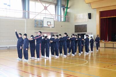 体育の授業では、体づくり運動として「集団行動」を取り入れて展開しています。「集団行動」は、保健体育の授業に限らず、学校生活を送るうえで必要不可欠な「集団で行動する力」を身につけることができる大切な題材です。