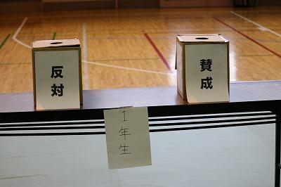 生徒会総会で、年間計画や部活動、委員会の予算などについて話し合い ました。