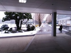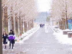 桜の開花が、少し遅れるかもしれませんね。雪の中の登校風景です。