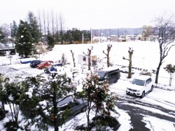 4月も半ばに近づきましたが、昨夜からのみぞれが雪に変わり、ご覧のとおりの雪景色となりました。