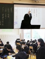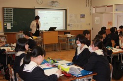 生徒への配布の資料と併せて、分かりやすく効果的に授業が進められ、グループ学習も活発に行われました。