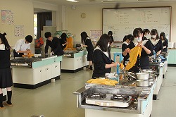 2年生の家庭科「服飾手芸」の授業で、「草木染め」を行っていました。乾燥した「タマネギの皮」を煮詰め「染液」を作り、さらしの生地を染めました。