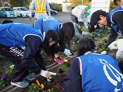 11月6日(水)に、NEXCO東日本・グループさまのご協力の下、今年度2回目となる「宮城川崎IC」環境美化活動を行いました。前回のマリーゴールドとサルビアに替えて、今回は「パンジー」を植栽しました。