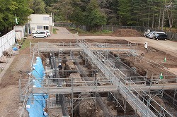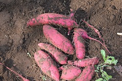 現在建設中の「屋内運動場」の建設車両進入路と、すでにサツマイモの苗を作付けした畑の位置が重なりましたが、進入路を少しずらしていただき、今日の収穫となりました。