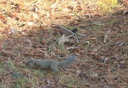 校舎北側のクヌギや松の木の「ドングリ」や「松ぼっくり」を求めて、早朝「リス」が学校を訪ねてくるとの情報がありました。