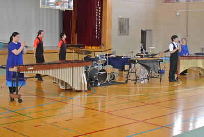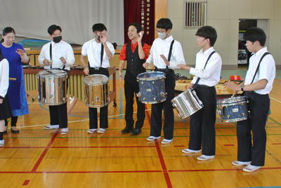 令和5年8月30日(水)に芸術鑑賞会がありました。ジャンルは昨年に引き続き音楽で、生徒たちが鑑賞しているフロアに演奏家の皆さんがいて、鉄琴、木琴、ドラムなどの打楽器演奏が披露されました。