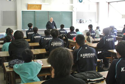 令和5年11月28日(火)の定期考査最終日に、交通安全講話が大河原警察署交通課の警察官を招いて、岩沼高等学園キャンパスさんと合同で行われました。講話では、将来自動車免許を取得したときに注意すべきことや自転車利用の際に注意すべきこと、また、電動キックボードの利用についても詳しくお話をいただきました。また、学校周辺で事故発生が多く、気をつける場所などの指導も受けました。かつての教え子が現在の教え子に講話する様子はとても微笑ましかったです。