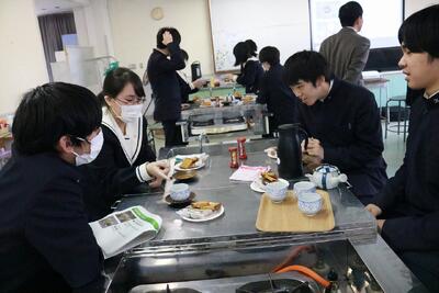 令和6年12月11日(水)、3年生がスーツ着こなしセミナーの後に、地産地消学習として、茶舗福ノ葉堂経営、そしてNPO法人 川崎町・学校サポートネットワークの副理事長を務める山﨑亜美さんを講師として、川崎茶についてのお話しと実技指導をいただきました。お話の内容は、山﨑さんが川崎町に移住するまでの体験や企業に至るまでの経緯、川崎茶との出会いと復活プロジェクトなどです。実技指導では、一般的なお茶の入れ方や、お茶を飲み比べて種類を当てる闘茶などがありました。3年生のこれからの人生が豊かになることを期待します。