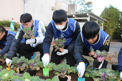 花壇いっぱいに葉牡丹植えが完成してから全体に水をまきました。最後に「心の花を咲かせよう」とのNEXCO東日本グループ様と川崎校との共同看板を背景に記念写真を撮りました(皆いい顔をしています。)。終了後、NEXCO東日本の方々から暖かいお茶を頂戴しました。お花の準備のほかに暖かいお茶まで頂戴し、大変にありがとうございました。微力ながら地域のために有意義な時間を過ごすことができました。今後ともよろしくお願い申し上げます。【文責:副校長 下田 仁】