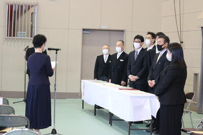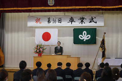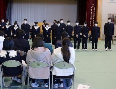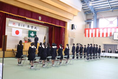 卒業証書が卒業生ひとり一人に授与され、その後、3年間皆勤賞、ボランティア功労賞の賞状及び記念品が関係の卒業生に授与されました。学校長式辞の後、川崎町の小山町長からご祝辞をいただき、卒業生の前途への励ましとなるお言葉を頂戴しました。来賓紹介・祝電披露の後、在校生代表(現生徒会長)から送辞、卒業生代表(前生徒会長)から答辞がありました。送辞では先輩方から様々な場面で支えていただいたとの感謝の気持ちと今後の卒業生の活躍への期待が述べられ、答辞では入学時からの3年間を振り返り、成長の実感と感謝の気持ちが素直な気持ちで述べられました。卒業生保護者代表からは、深い感謝の気持ちが伝わってくる非常に丁寧で心温まる謝辞をいただき、教職員一同、自然と頭が下がりました。そして、校歌演奏、閉式。厳粛で立派な卒業式を迎えることができました。関係の皆様、大変にありがとうございました。
