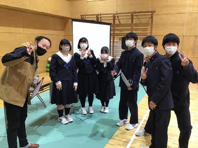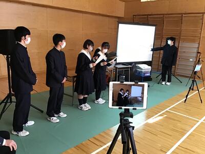 このような状況の中で、これまで川崎町をフィールドとして活動されてきた経験を持ち、現カワサキクエストにも関わりながら、編集動画の開設HP作成など新年度(令和4年4月~)の今後のカワサキクエストを念頭に関係生徒をサポートしていただいている講師の澁谷 剛さん(Webデザイナー、元・川崎町地域おこし協力隊)から、ご自身のこれまでの歩みを含む地域貢献活動についての講話をしていただきました。この講話は、今後の川崎校生徒による地域貢献活動や総合的な探究の時間「カワサキクエスト」へ取り組む前向きな雰囲気を醸成する目的で2月17日(木)3,4校時に行ったものです。講話の後、1年生有志グループ(6名)による川崎クエストの取組について実践発表をしてもらいました。有志グループの皆さんはそれぞれ、放課後、部活動の隙間時間などを利用して休日も含め、皆で遅くまで取り組んできました。インタビュー(内容・役割分担)へのアドバイスや、著作権や肖像権などを含めた動画編集のご指導をしていただきました関係の皆様に厚く感謝申し上げます。【文責:副校長 下田 仁】