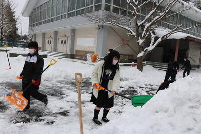 令和4年1月22日(土)、川崎町の中でも雪深い地域に一人暮らしをされているお年寄りのご自宅周辺の雪かきを行う社会福祉協議会主催のボランティア活動(スノーバスターズ)に参加しました。社会福祉協議会の方の車3台に分乗して、笹谷方面・青根方面のお宅の雪かきを行いました。川崎校からは、川崎町内在住の生徒8人とバスケットバール部顧問の先生が参加しましたが、皆さんから感謝の言葉をいただき、生徒たちからは「微力であったとしてもお役に立つことができて良かった!」との達成感を感じていたようです。このような活動を積み重ねることにより、人間的に成長することができると思います。地域のお役に立つことができる機会を与えていただき、ありがとうございました。