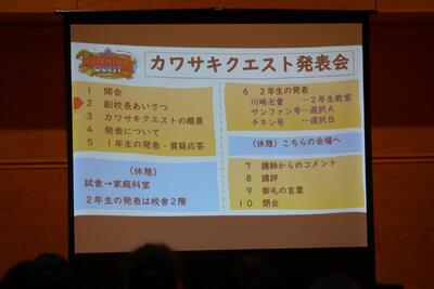 令和6年2月1日(木)に、川崎町町長を始めとし、お世話になった方々をお招きして、2・1年生の総合的な探究の時間で取り組んでいる、カワサキクエストseason3「町内で魅力的な取組をしている方々のインタビュー動画」(2年生)、「特産のそば粉を使った新しいメニュー開発【ガレット】」(1年生)の成果発表会が行われました。この発表会に至るまでの道のりは大変で、放課後も各グループが編集会議や作業を行いました。その成果は素晴らしく、来校いただいたお客様に感動を与えるものでした。 【文責:副校長 小野寺基好】