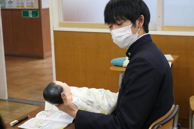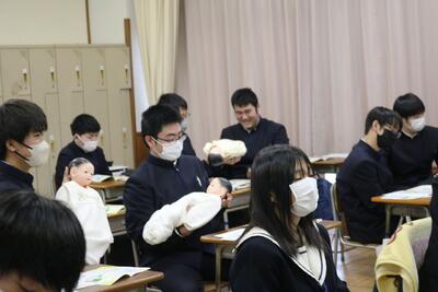 令和6年2月5日(月)に、宮城県助産師会 東北文化学園大学 医療福祉学部看護学科より講師をお招きして、3年生対象の「高校生向けライフプランセミナー」を開催しました。参加した生徒の感想には、「近い未来、あるいは遠い未来のことを改めて考えることができた」「赤ちゃんを抱っこしてみて思ったよりも重くてびっくりしました」「結婚や子どもをもつこと、出産、子育ての大切なことを知ることができました」などがあり、将来に向けてたくさん学んだようです。