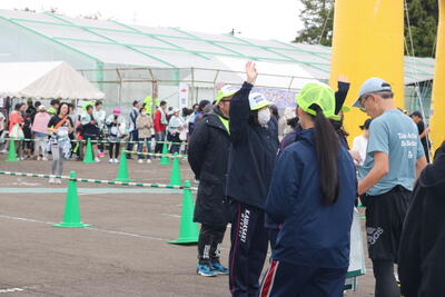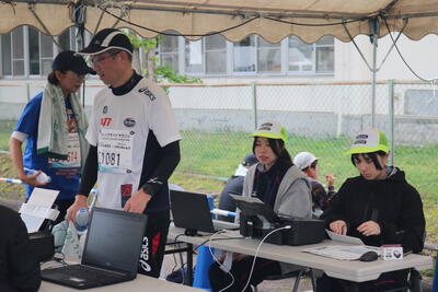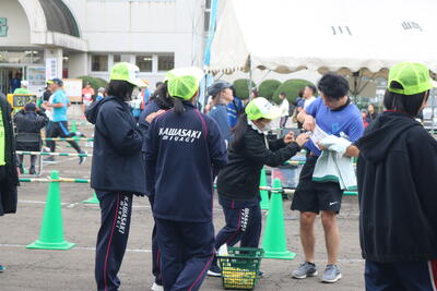 当日の天気が心配でしたが曇り空でランナーにとっては最高の天気であったと思います。川崎校からはランナー(3km走)と運営のボランティアとして参加しました。ランナーに参加した29名全員が完走しました。ボランティア係は、完走証明書の発行と、アンケート記入後、温泉入浴券の配布し、フィニッシュゲートをくぐった選手の皆さんの、爽やかな笑顔に出会えました!!