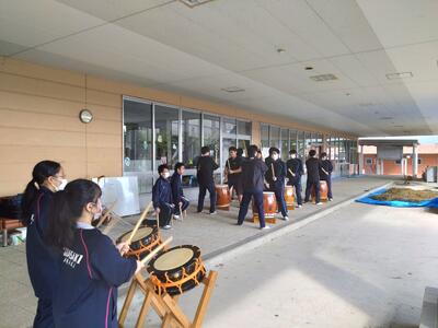 文化祭に向けて練習している「学校から漏れる太鼓の音とよさこいの音楽」・・・気になるようです。施設利用者の方々はこの時期になるとそわそわして大変楽しみにしています。