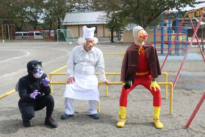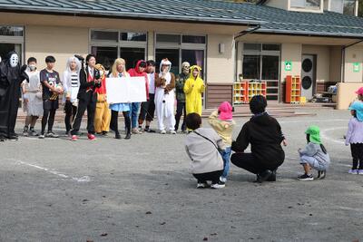 先生方も仮装しています。昨年とは違ってリアルな・・・・姿にこども園の生徒も驚き、しかし帰りは寂しそう。