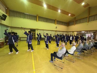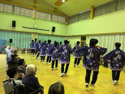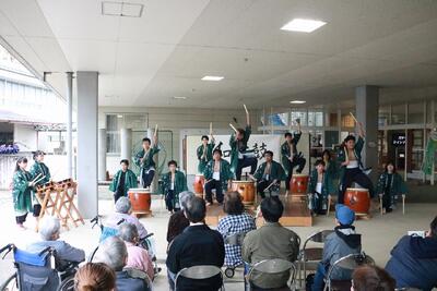 川高祭で披露した「和太鼓・よさこい」の演舞を、隣接する川崎町デイサービスセンターの施設利用者の方々に披露しました。