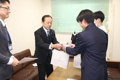 選ばれた3名の表彰に小山町長さん来校していただき、表彰と記念品を授与されました。