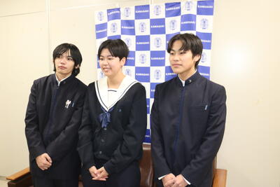 11月12日(水)川崎町村合併70周年記念式典が開催されました。記念式典等で使用するキャッチコピーを用内の中・高校生より募集があり本校生徒の作品3名がノミネートされ1名が採用されました。
