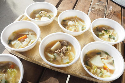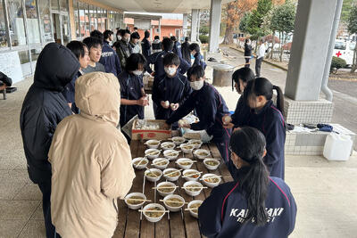 川崎町ボランティア友の会、川崎町社会福祉協議会、川崎町福祉課の協力の下、炊き出し・避難所開設訓練を実施することで、災害時に迅速で安心できる支援体制を整え、地域の結束力を高める。温かい食事や安全な避難環境を提供できる準備は、被災者の心身の安定につながりことなど訓練を通して学ぶことができました。