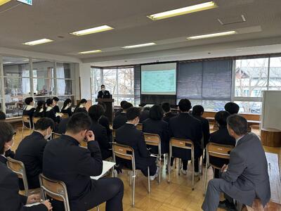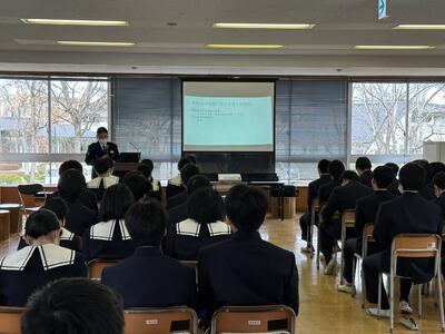 12月2日(火)第3期考査終了後に大河原警察署・交通安全課より講師をお迎えし、交通安全に対する生徒の意識を高め、事故を未然に防止すること「いのち」尊さについて講話をいただきました。