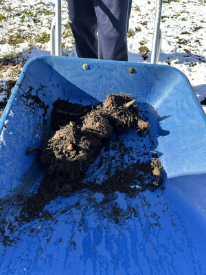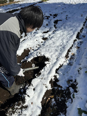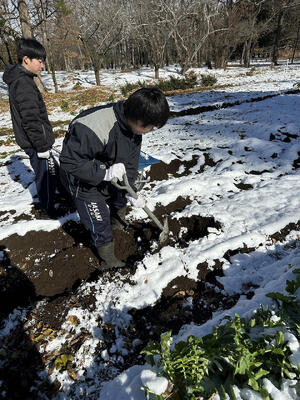 川崎校では長年「川崎特産こんにゃく」の栽培を行っており、5月に1年生〜3年生の種芋を移植し、12月4日に収穫を行いました。川崎町は昔からこんにゃく農家が多く、川崎の土は球茎や根茎などに適しているのかもしれません。一方、栽培に労力がかかることから、年々農家は減少しているようです。