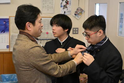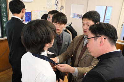 12月18日、3学年を対象に、大河原町所在の紳士服販売店のご協力のもと、「着こなしセミナー」を実施しました。